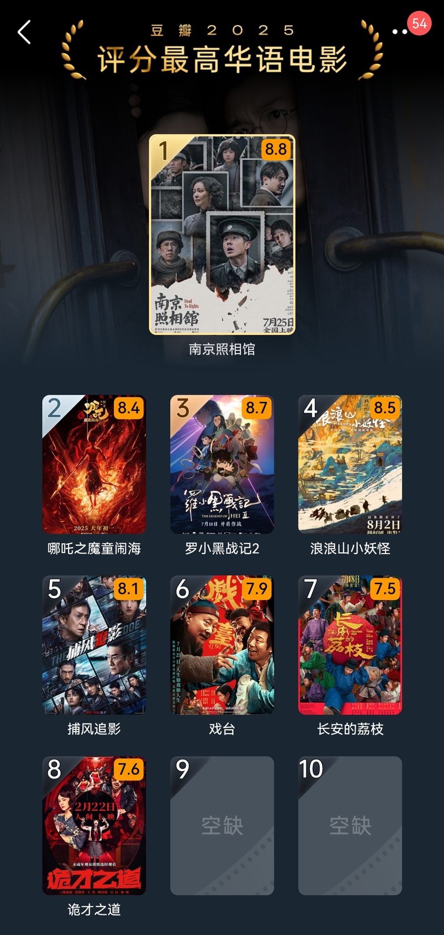 日前,豆瓣发布了主题为“显影的重量”的2025年度评分最高华语电影榜单,《南京照相馆》以8.8分登顶榜首;8.4分的《哪吒之魔童闹海》与8.7分的《罗小黑战记2》、8.5分的《浪浪山小妖怪》列二三四位,三部影片都是动画电影。其他进入该榜单的电影还包括《捕风追影》(8.1分)、《戏台》(7.9分)、《长安的荔枝》(7.5分)和《诡才之道》(7.6分)。入围电影除了评分要在7.5分以上,据悉对打分人数也有一定要求,有观众觉得《震耳欲聋》等开分在7.5分以上的电影同样值得上榜,也有人认为宁缺毋滥,空缺没必要强补。