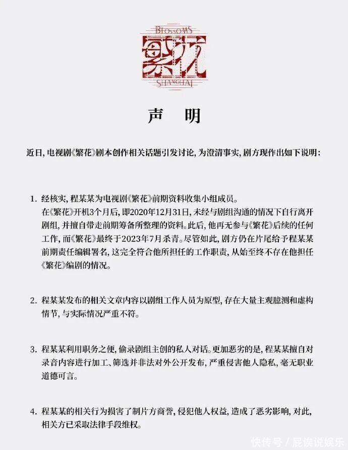 不过根据《繁花》剧组给出的声明里可以看出,《繁花》剧组坚称这段录音是加工合成的。关于录音的真假,直到现在也没有个定论。