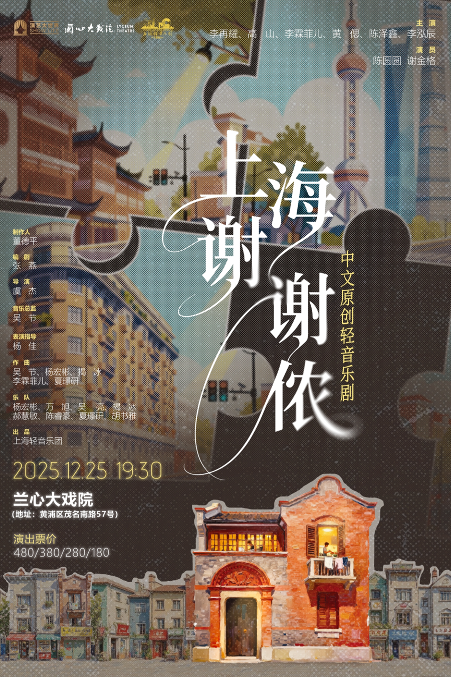 当外滩的晨雾漫过武康大楼的上空,当城隍庙的灯火交织着街头的欢笑,一档虚构的24小时真人秀将一群“沪漂”的命运骤然相连。12月25日,上海轻音乐团推出的原创海派轻音乐剧《上海,谢谢侬!》将在兰心大戏院亮相。作为2025第11届上海国际喜剧节首部“轻音乐剧”,它将尝试以创新姿态为年末的沪上舞台注入治愈暖流。